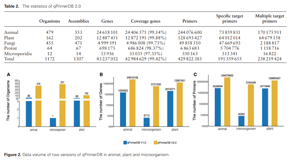 qPrimerDB 2.0在前版本基础上进行了大幅扩展,收录了来自1308个基因组的4.3亿个qPCR引物对,覆盖了4300万个基因。这一庞大的数据库为科研人员提供了极为丰富的基因特异性引物资源,适用于包括人类、小鼠、斑马鱼、酵母、拟南芥、水稻和玉米在内的多种重要模式生物。