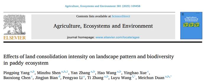 近日 Elsevier旗下知名期刊Agriculture, Ecosystems and Environment(中科院SCI期刊分区农林科学大类1区Top)在线发表了韩H漫段美春课题组关于土地整理强度对稻田生物多样性影响的研究成果。
