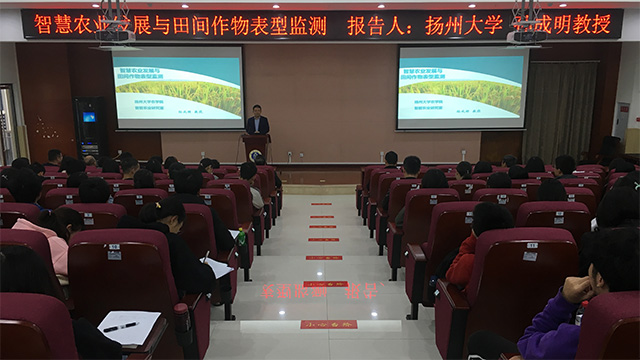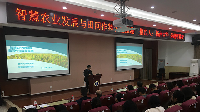 报告开始前,何院长向到场师生隆重介绍了孙教授,并对孙教授的到来表示热烈的欢迎和衷心的感谢。孙教授是扬州大学博士生导师,农村发展与信息技术系支部书记、系主任。主要研究作物系统模拟与图像识别、作物精准栽培与农业信息技术、作物响应气候变化的机理及其估算,在国内外高水平杂志上发表学术论文100余篇。承担《农业信息技术》、《VB程序设计》、《软件工程》等课程教学,连续三年获评扬州大学最受学生欢迎的任课教师,获扬州大学本科教学“金讲台奖”荣誉称号。