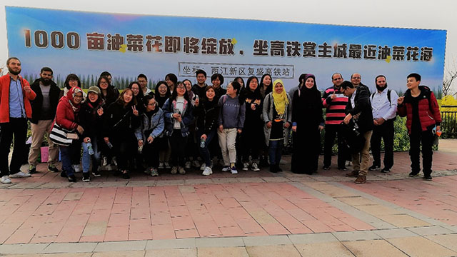 2016级隆平实验班学生及11名留学生,参观了“网红打卡圣地”——复盛五彩油菜园。本次活动分为参观五彩油菜园和素质拓展活动两个部分。