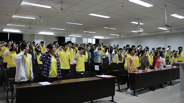最后,吴桢喆同学带领全体同学宣誓,在“心系三农,顶天立地”的雄浑誓言中,在同学们攥紧的拳头和坚定的眼神里,充溢着大家服务师生的热情、成长成才的渴望、助力韩H漫