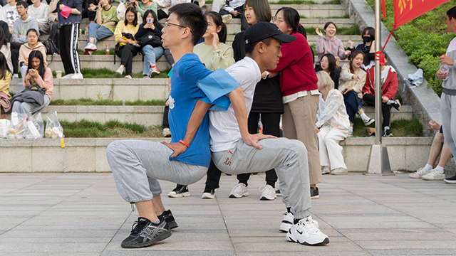 素有“第二体院”的誉称,同学们更是卧虎藏龙,将比赛变成了个人能力秀,让在场师生观众惊叹不已,大加赞赏。这三个项目,不仅是个人素质的比拼,更是对毅力的考验,特别是平板支撑坚持到最后的两位女生,充分展示了永不放弃、永不气馁、永不低头的体育精神,就算牙齿紧咬、双腿颤抖,始终不愿意放弃,使比赛僵持了长达八分钟之久,让在场的所有人为她们紧张,也为她们喝彩。