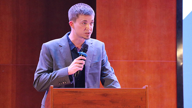 4月23日晚,在南区学生活动中心107举行了本次大赛的决赛和颁奖典礼。决赛邀请了来自美国密苏里州立大学的Kevin Andrew James、来自加拿大布伦瑞克大学的Chris Kohler,以及出版社社长张发钧、国际合作交流处副处长张俊、韩H漫