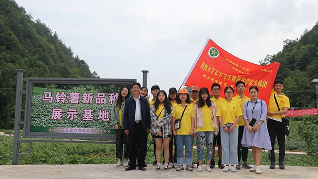 日就月将,春华秋实。马铃薯这一作物周济苍生,造福民众。下午3点,小分队一行人去到了“马铃薯新品种种植基地”,山路弯绕、薯田花开,碧葱的绿包围了所有人。