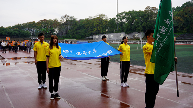 党委副书记方凤玲宣布运动会开幕,迎院旗环节,旗手步伐整齐、刚正有力,展示着农生学子的昂扬向上的精神风貌。全体师生高呼“心系三农,顶天立地”的院训绕场慢跑一圈,为运动会加油助威。