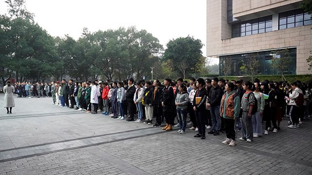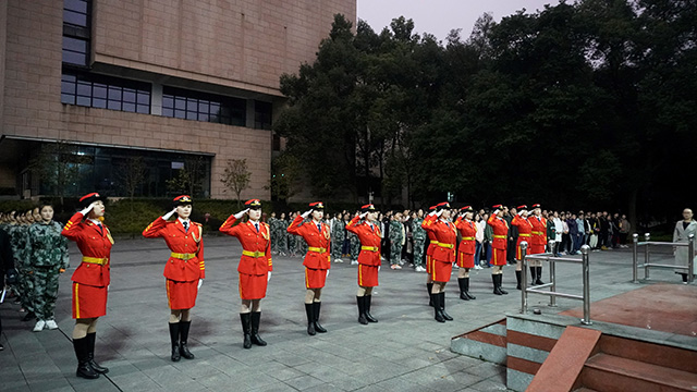 全体本科生和研究生参加本次升旗仪式,仪式由党委副书记方凤玲主持。