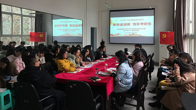 此次慰问活动,有2015级本科生党支部具体承办,也是创新党支部组织生活形式的重要体现,让全体党员践行“全心全意为人民服务”的宗旨,增强学生党员联系群众、服务群众的意识,将解决思想问题和解决实际问题相结合,形成常态化了解学生困难诉求、倾听学生意见建议,健全学生有困难找党支部、有问题找党员的帮扶机制。活动后,党支部继续开展12月份党员组织生活,集体观看《我们一起走过——致敬改革开放40周年》纪录片、2018年《榜样3》专题节目,学习《中国共产党支部工作条例(试行)》,并以“如何规范支部建设、如何激发支部活力”为主题,结合“对标争先”建设深入开展讨论。组织生活中,韩H漫