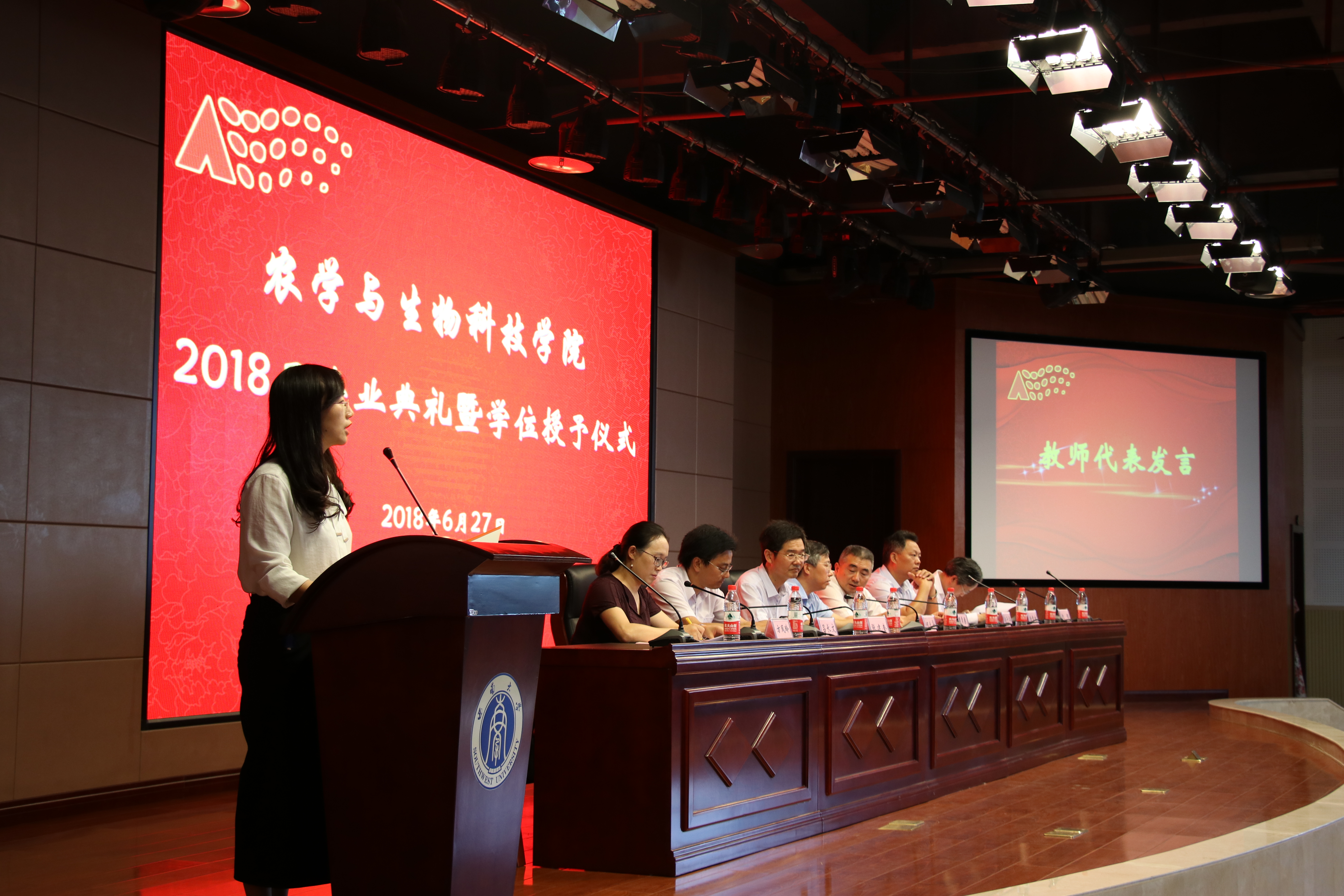 毕业本科生代表廖晓丹、毕业研究生代表吴沁安发言,抒发了对学校的依依离别情。教师代表倪郁教授发言,表达了对于毕业生们的美好祝愿。