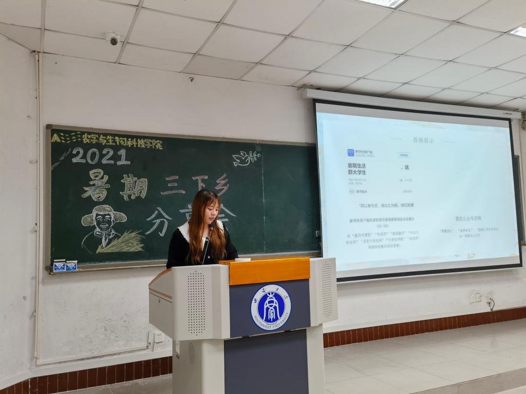 聆听了实践队员们的总结分享后,来自2021级的植物科学与技术3班的董鲤铭同学表示:“此次分享会不仅仅是一次简单的经验分享,它还让我们深深地了解到中国农村的现状,让大学生知道该怎样用自己所学知识去深入农村实践,又该如何为实现乡村振兴贡献自己的青春力量。”除此之外,也有新生同学表示,“三下乡”能让大家懂得现在的幸福生活来之不易,在全面建成小康社会的现在,也仍有一些地方的人民过着没有我们那么富足的生活,现代化的农业生产做到全面推广依旧任重道远。我们青年一代应当深入农村基层,将青春热血洒在祖国的大地上。