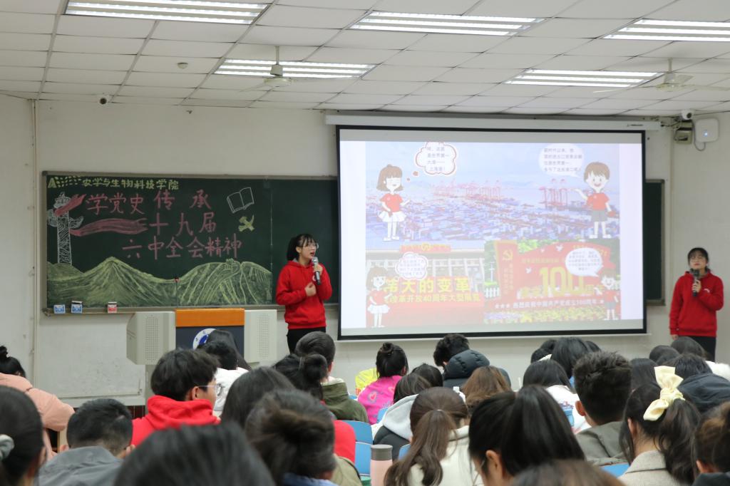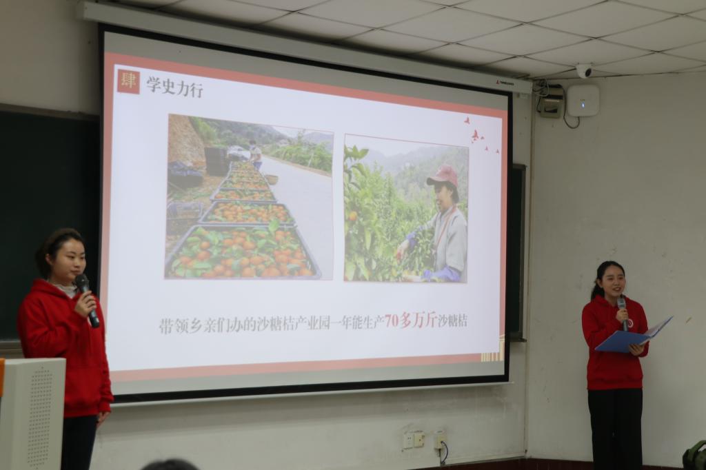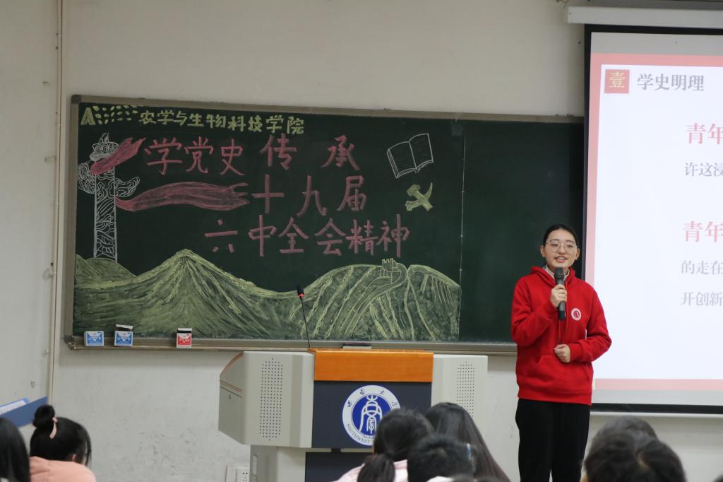 第四届大学生党员示范班的宣讲成员,给全体团校成员宣讲党史故事和党的十九届六中全会精神。