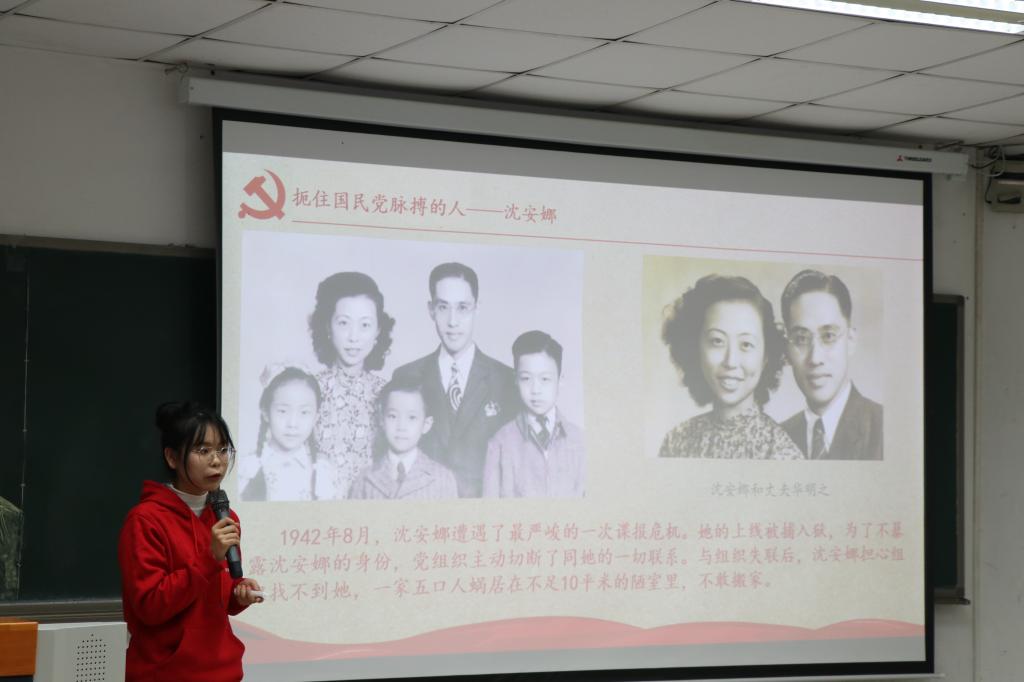 第四期大学生党员示范班的成员赵素青给同学们介绍了扼住国民党脉搏的人——沈安娜的先进事迹。她打入国民党内部,为党搜集情报,以舍小我,成大国传奇。党员示范班的马宁介绍了为党献身的反内战斗士——于再的先进事迹,他辗转各处,致力于抗日和反内战事业。于再的牺牲,使联大学生避免了一场灾难,也实践了他的入党誓言——“活着干革命,死为党献身”。