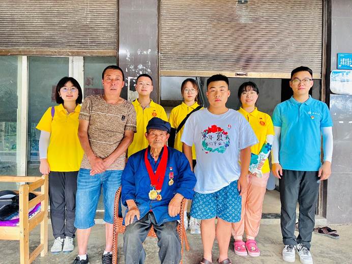 号召同学们发挥党支部战斗堡垒作用,助理乡村组织振兴,依托射虎实践服务基地,与当地党支部结成红色“1+1”共建关系,共同开展联合党日活动。为激励引导青年学生党员和入党积极分子传承红色基因、赓续红色血脉,实践队开展了“新老党员面对面,共话初心续光辉”的农村基层老党员寻访活动,寻访润溪乡樱桃井村的老兵、党员,开展面对面访谈,感悟老一辈的入党初心和精神品质,进一步明确自己的使命担当,为国家发展贡献青春力量。