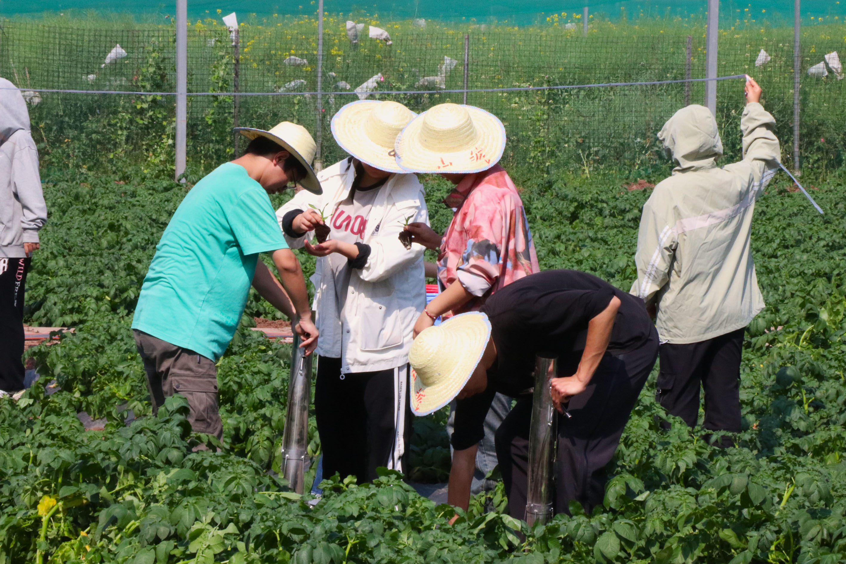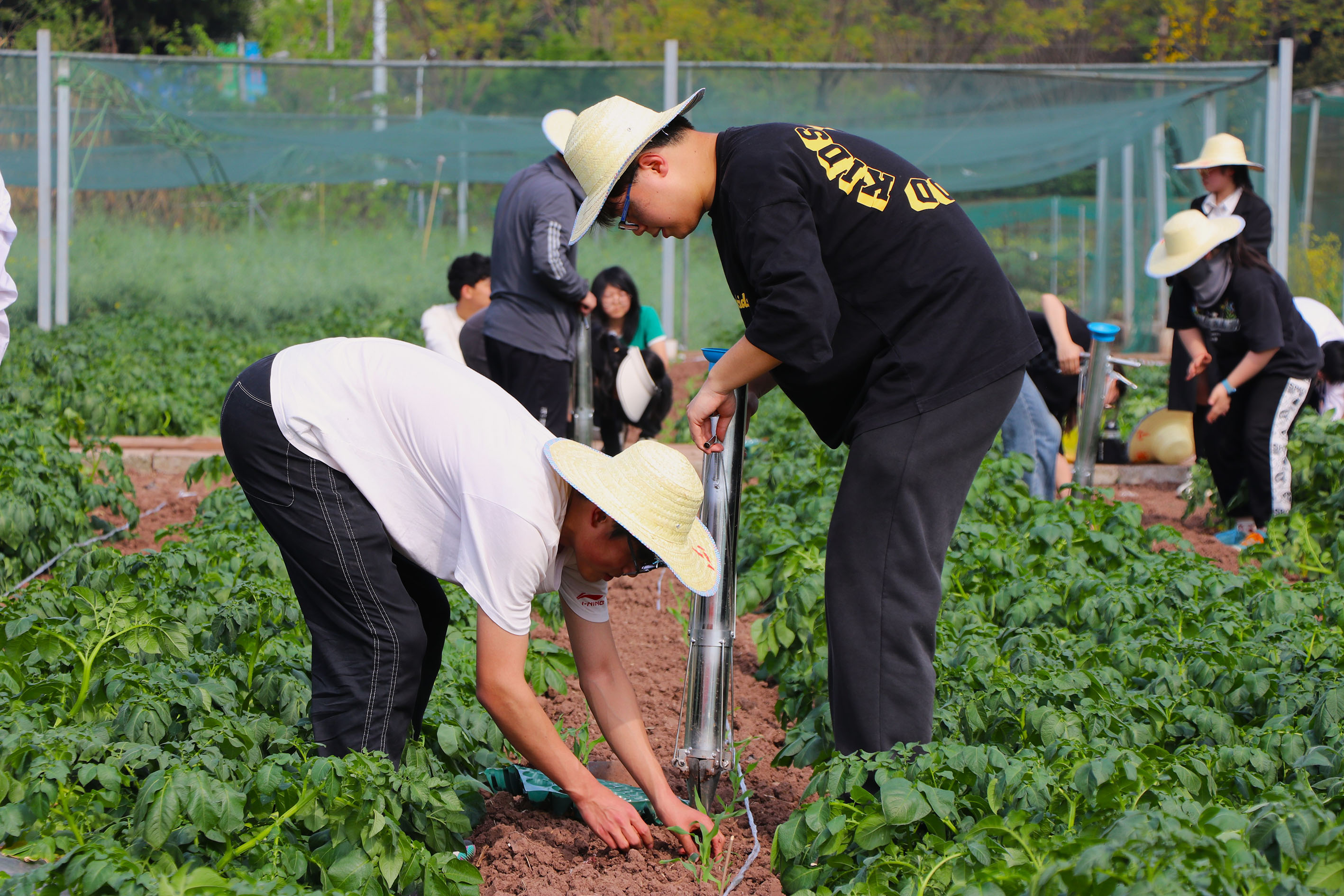 本次移栽活动分为上午和下午两个时段进行,34名体验者分别跟随农学专业的同学们和《作物生产实训》课程授课教师赵勇来到韩H漫