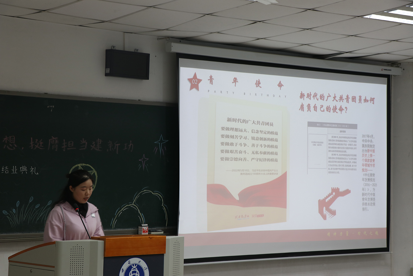 随后,团委书记许莹竹老师讲授主题团课,带领同学们共同学习习近平总书记五四青年节对全国广大青年寄语精神。对照原文,逐段学习并谈学习感悟,希望同学们认真贯彻落实讲话精神,脚踏时代征程,听从党的召唤,在各领域奋勇争先,奋力书写为中国式现代化挺膺担当的青春篇章。