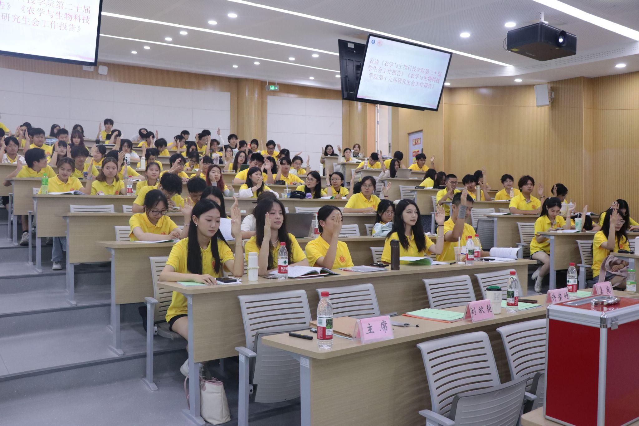 党委宣读批复并发表讲话。她高度评价了第二十届学生会、第十九届研究生会在思想引领、服务同学、组织改革、校园文化建设等方面取得的显著成效。面向新征程,刘秋艳副书记对全体代表和全院青年学子提出四个目标:一是要筑牢信仰根基,勇担强国复兴使命,深刻领悟新时代青年的责任与担当;二是要激扬奋斗之志,传承五四精神,将个人理想融入强国建设、民族复兴伟业,在服务农业新质生产力发展、推动乡村全面振兴中展现青春风采;三是要扎根实践沃土,练就兴农报国过硬本领,在专业学习和躬身实践中追求卓越,传承“学农爱农、强农兴农”的情怀;四是要提升服务效能,发挥好桥梁纽带作用,建设清新阳光的学生组织。