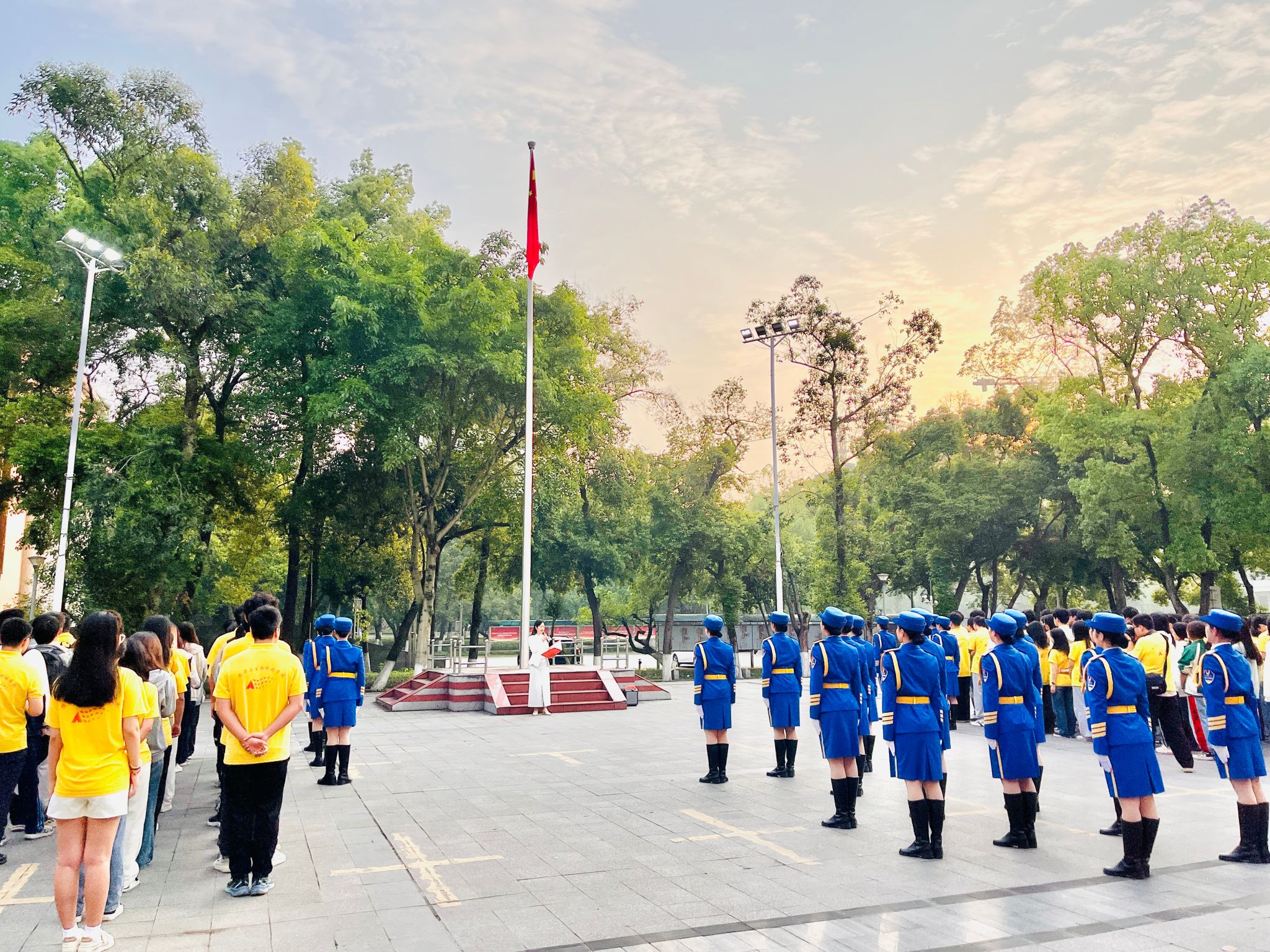 在光大礼堂国旗台庄重举行升旗仪式。韩H漫