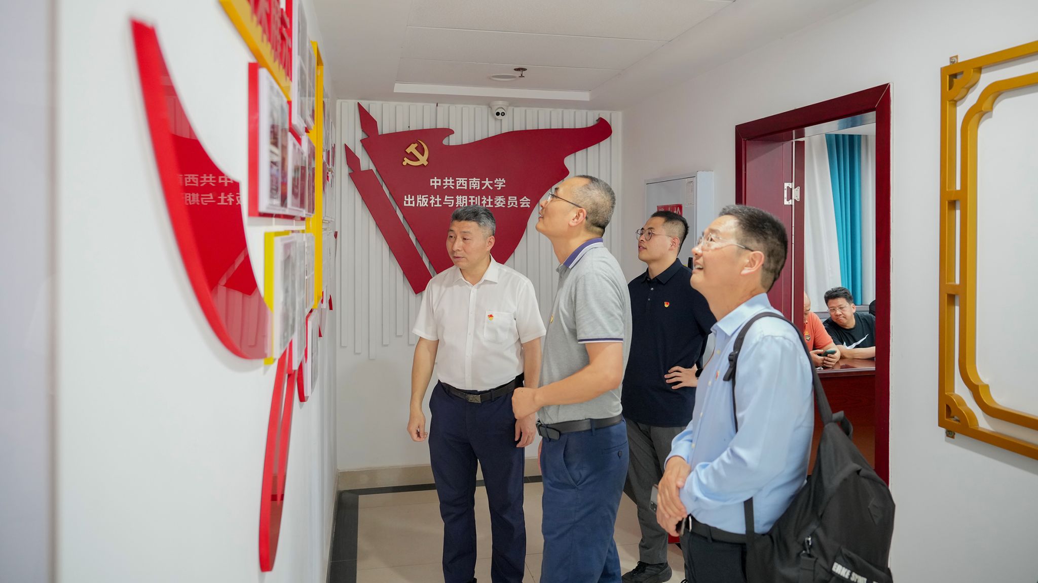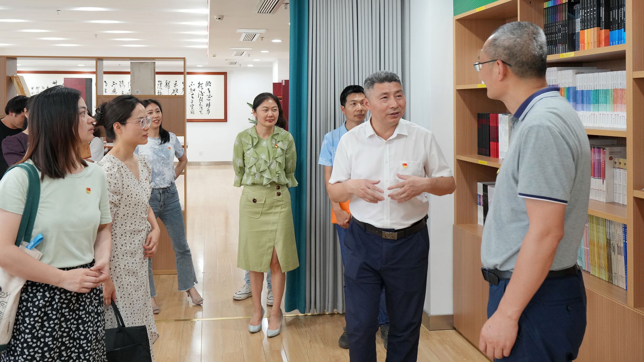 党委阳义健书记、张建奎副院长、支部书记张婷带领支部全体党员来到出版社新大楼。出版社与期刊社党委书记杨毅率出版社与期刊社党委第一支部全体党员热烈欢迎大家的到来,并参观了出版社四楼展厅、18楼演播室和20楼会议室,在此期间,杨毅书记向大家详细介绍了出版社的特色产品、数字出版的设施设备以及党建、工会的宣传栏,了解了出版社的建社历史、出版作品和业务范畴等。