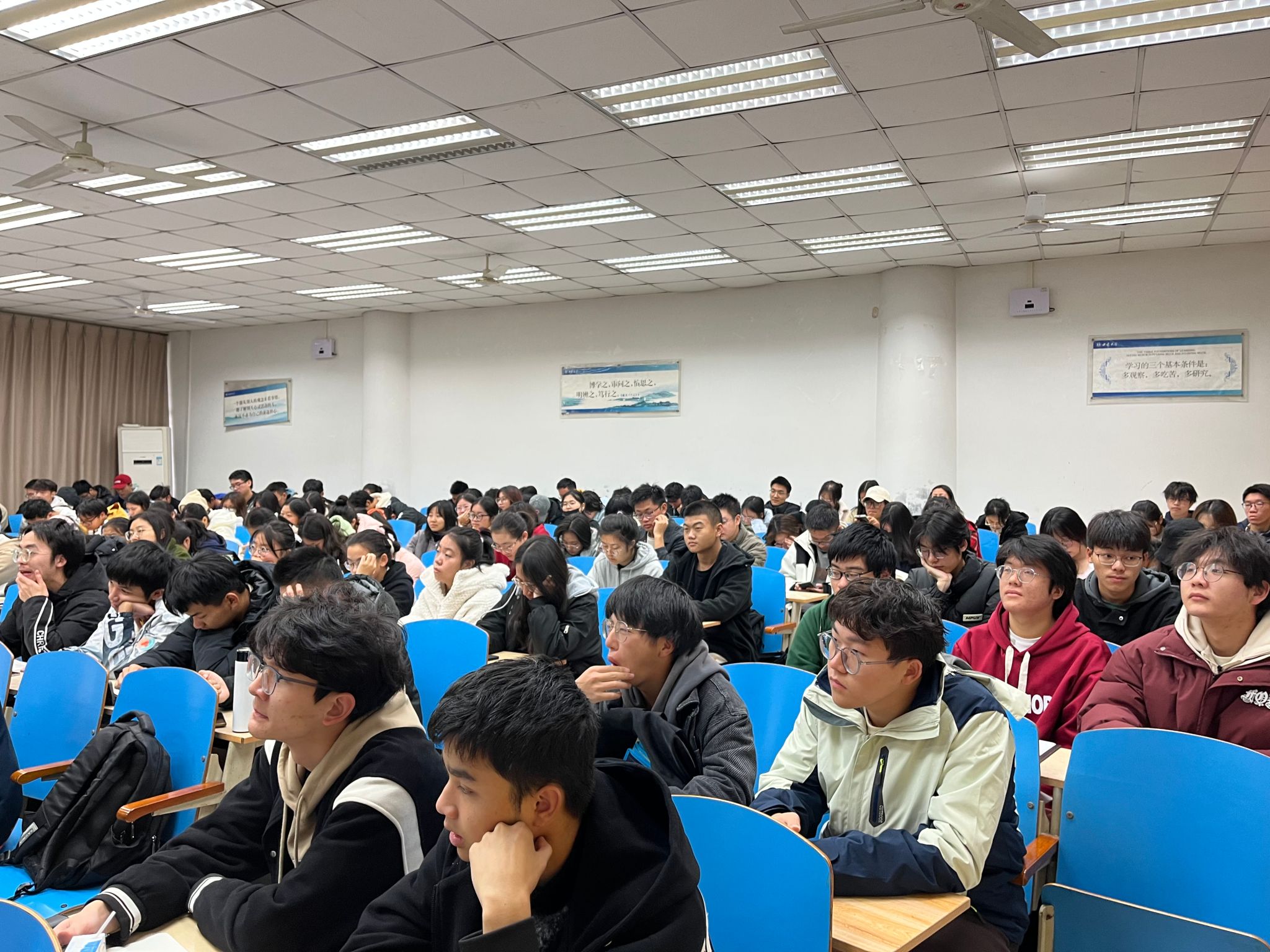 2021级级辅导员高荣蓉老师、2021级和2022级优秀学长学姐为同学们传授考试复习方法和知识要点。首先,2021级辅导员高荣蓉老师以《不挂科的N种方法——大学课程通关秘籍》为题,向全体2023级同学讲授了大学里高效学习的方法,从重视课本和老师的PPT、多刷题等基础秘籍到上课跟着老师划重点、建立固定学习社群、学会寻求优质资源等进阶秘籍,以幽默的口吻强调了成绩的重要性。高老师结合同学们的学习生活实际,以“结课时间晚,课程难度大”的现状警醒大家,以激励大家要有紧迫感,把复习提上日程。最后她以2021级优秀学姐学长的突出表现为例,帮助2023级同学树立学习榜样。