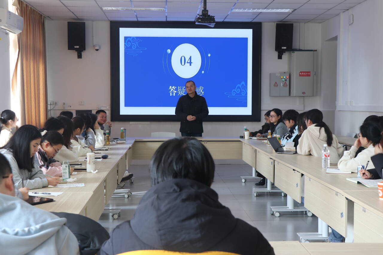 学姐们既展示了自己的研究方向和研究成果,又分享了各自在项目实施中的经验教训,助力学弟学妹们规避同类问题,并提供了优化的解决方案,让同学们受益匪浅。在自由交流阶段,班级同学也积极提问,学姐们以亲身经历为学弟学妹答疑,老师们也对相关问答进行补充。同时,班主任李超锋老师同学们详细讲解了大创项目立项书的书写方法及格式要求。