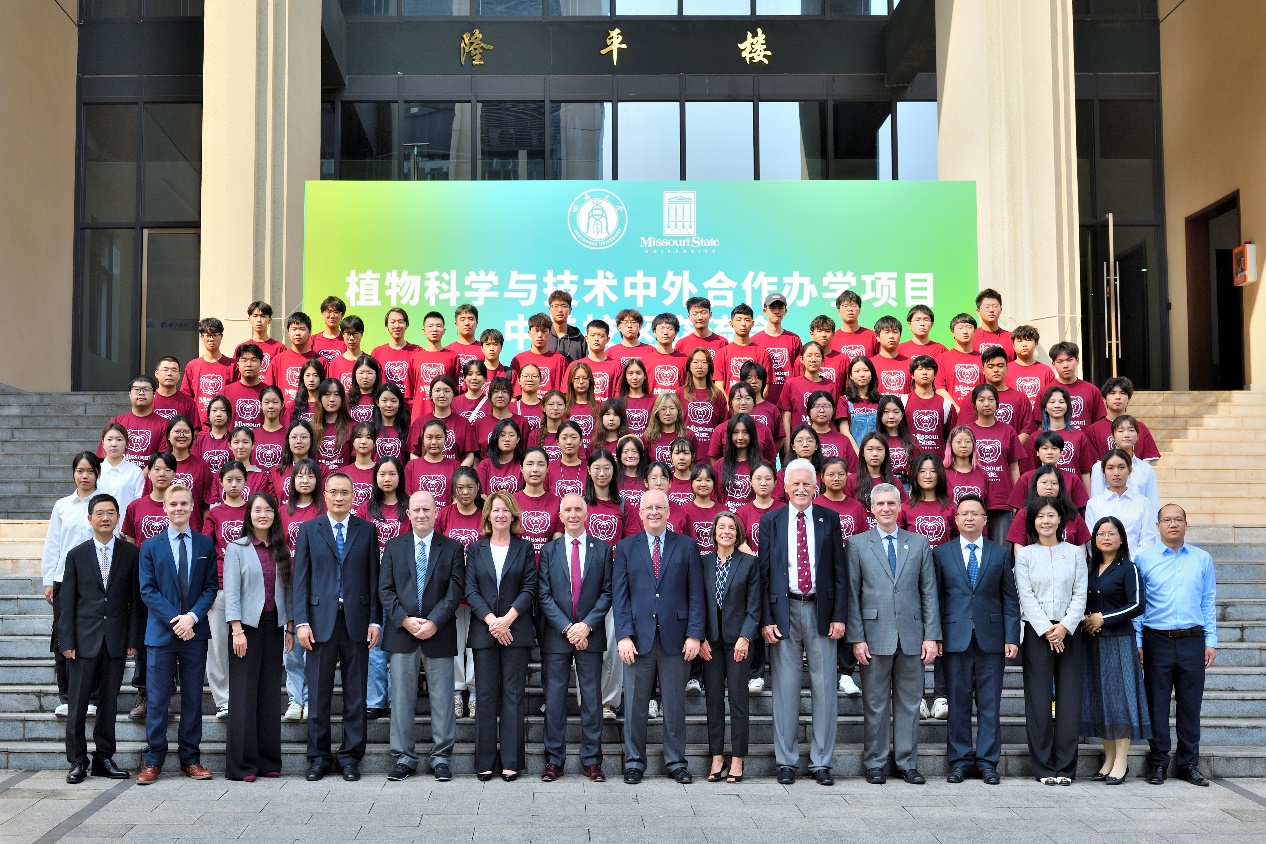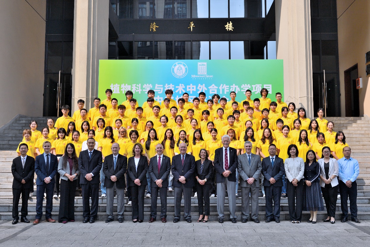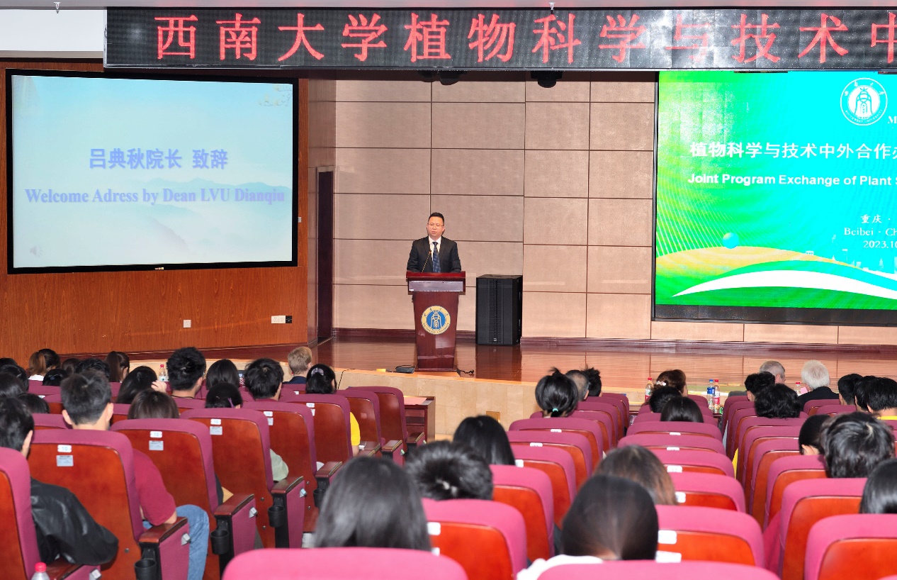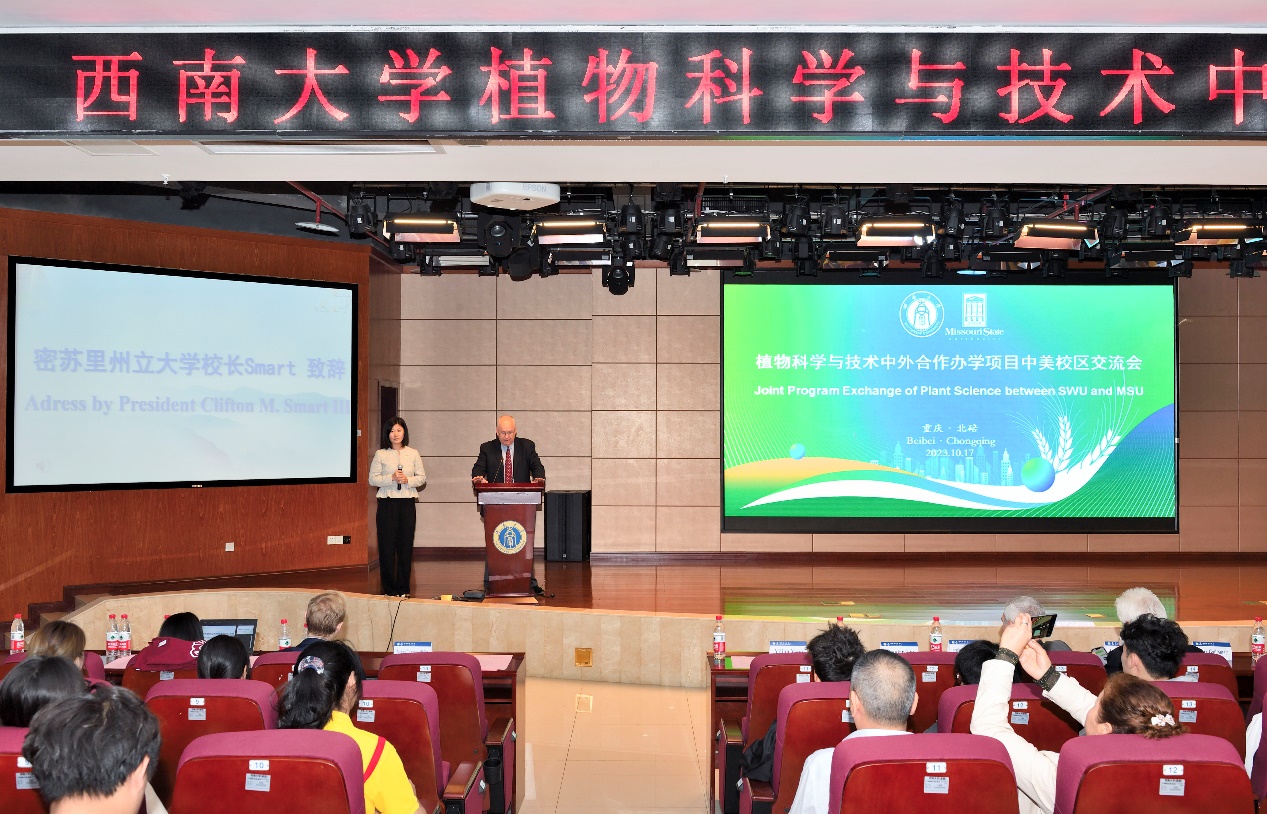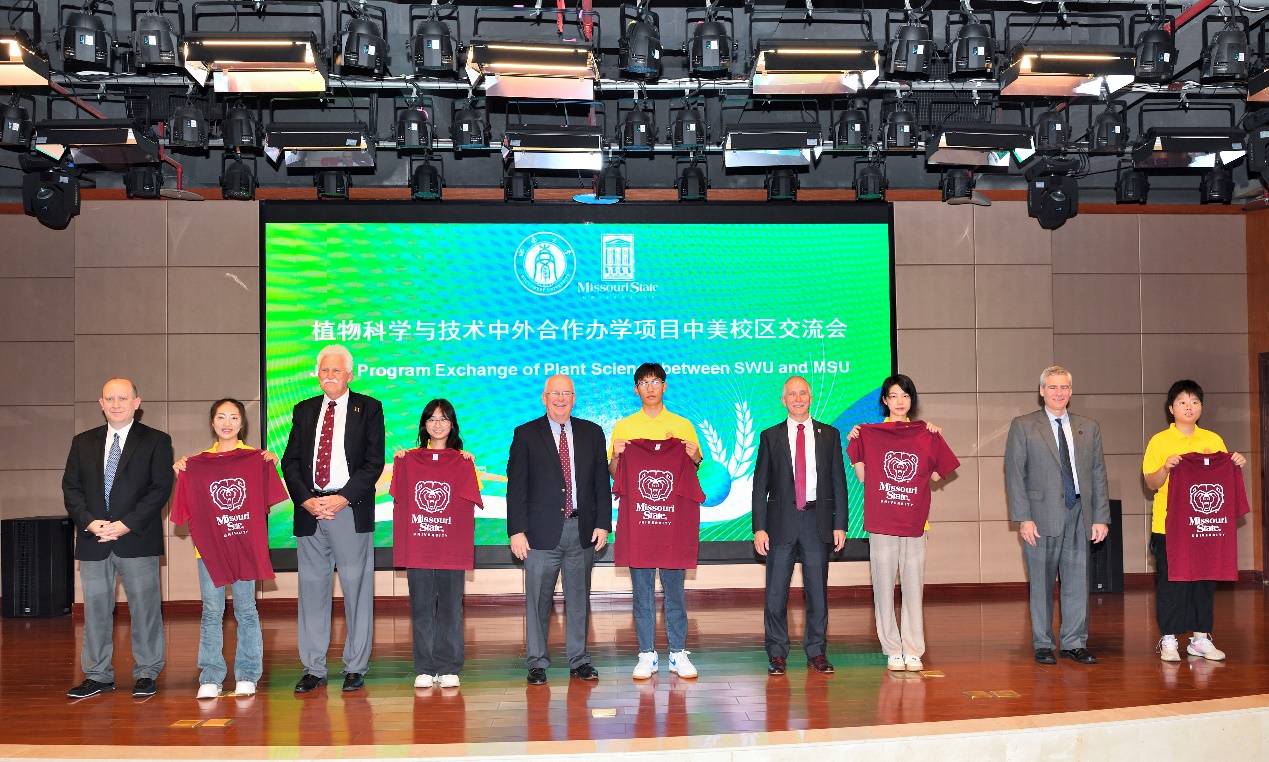 布莱德副校长介绍了MSU的基本情况、学校的相关设施以及学习资源。他强调,以学生为中心是MSU从始至终的教学理念,无论植科学生是否准备好要前往美国春田校区,MSU的所有教职人员都会为大家提供一切可能的帮助。随后MSU的5位校领导,为2023级植科新生分发了MSU校服。