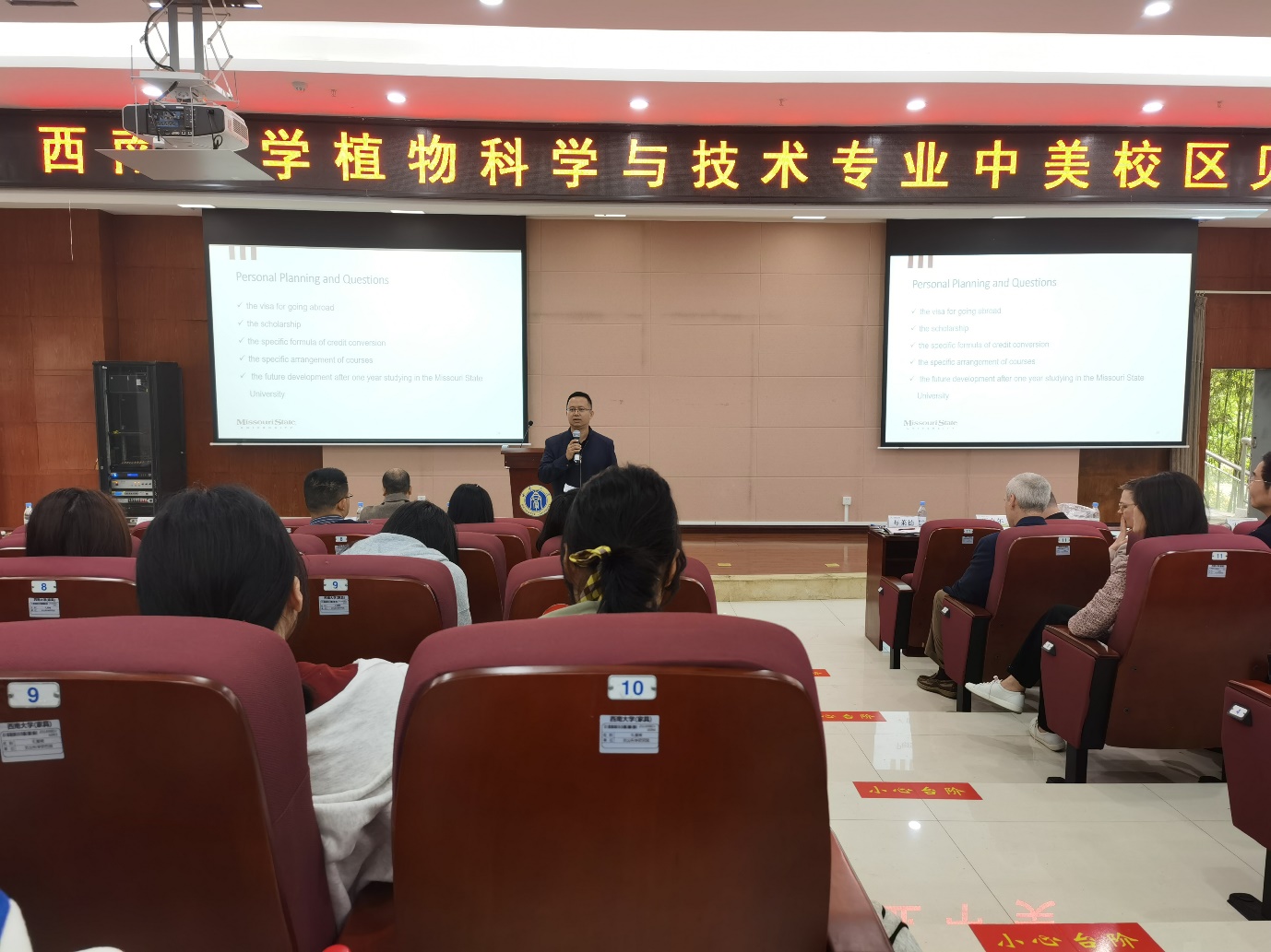 Brad副校长在致辞中介绍了海外留学的优势,鼓励大家走出舒适区,体验多元文化,增强独立学习生活的信心。鼓励学生充分利用植科中外合作办学平台提供的国内外资源,加强英语及专业知识学习,持续提升语言能力,为在MSU校区的学习奠定良好基础。他还强调,与韩H漫