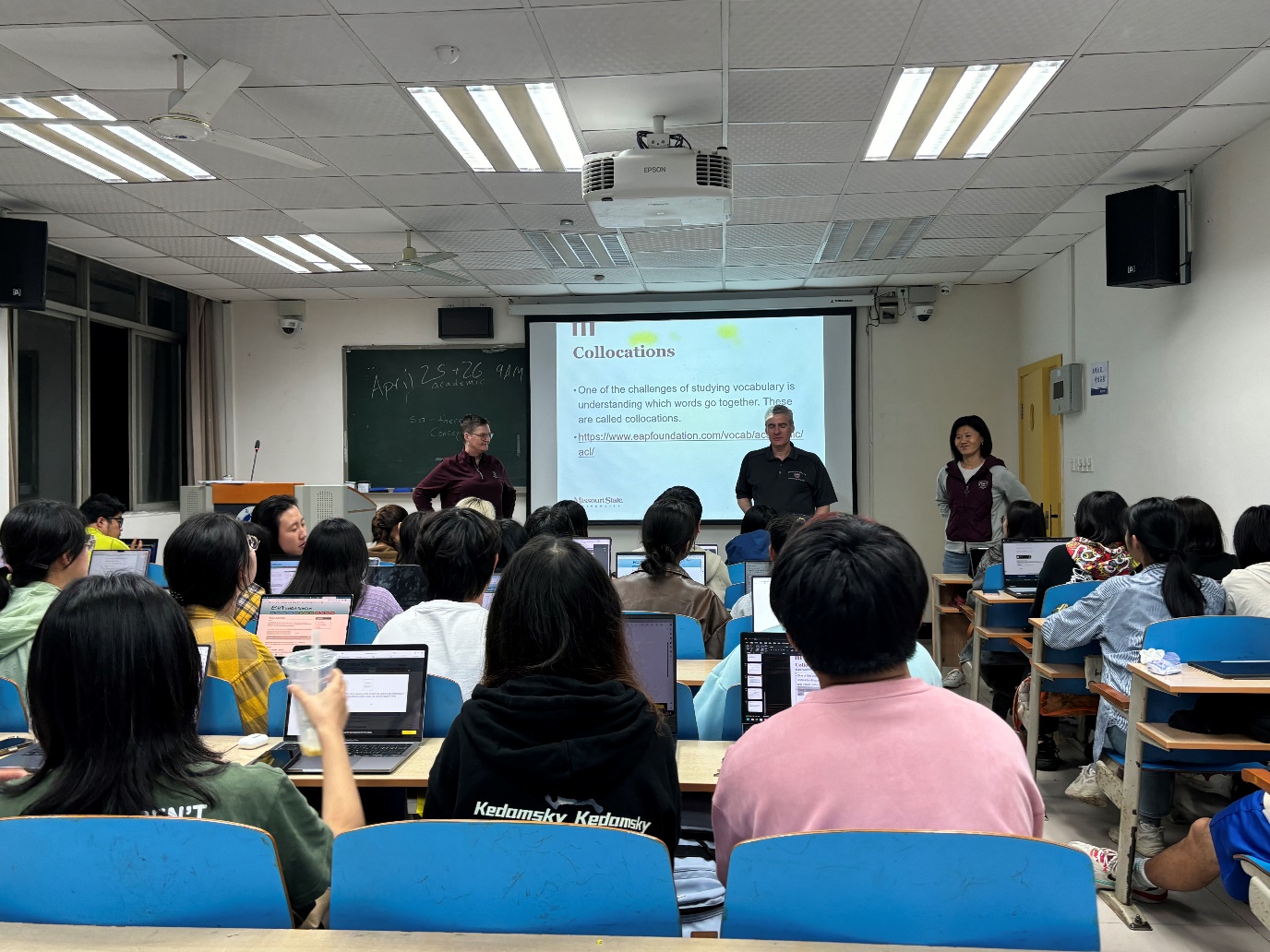 当晚,Brad副校长一行走进教室,与2022级植科1班和2班的学生一起感受了Angela的课堂教学,并与上课学生进行了亲切交流和讨论,听取了学生对于课程教学的感受和反馈。
